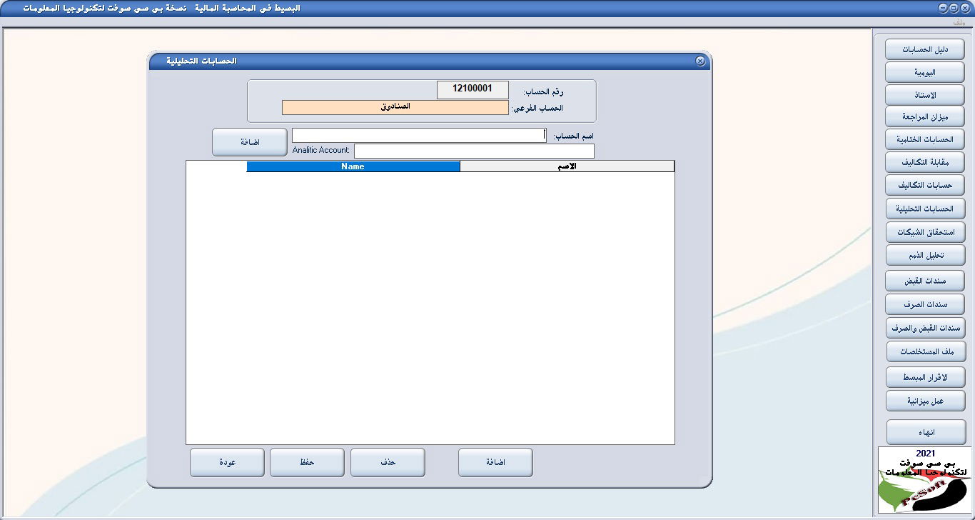 لإضافة حساب فرعي وليكن لحسابات الصناديق :